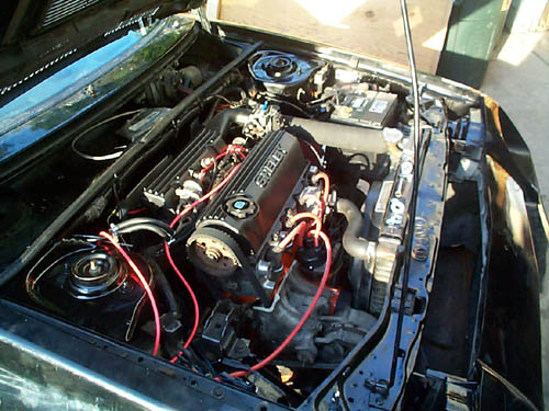 This car was purchased in February, 2001 from a used car lot in Valparaiso, IN. While driving it home, the TII motor that was installed at some point, promptly let go causing catastrophic damage and a small engine bay fire. Taking this misfortune in stride, the motor was promptly pulled out and torn apart for a rebuild. MES in Monee, IL took care of re-boring the block, welding up the crank, and recutting the bearing surfaces as well. They were able to save only two of the con rods, and another two were purchased from Mopar to complete the engine. An A555 was acquired out of an '89 Daytona Shelby and the shifter and cables were donated from my '85 Daytona Turbo, which was scrapped recently. Here are some more pictures and info on what's been done: