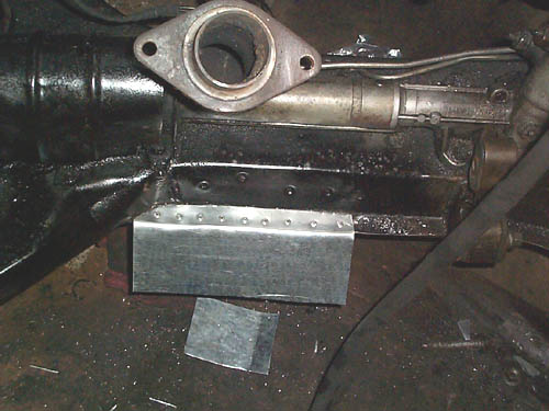 Here iHere is a close up of the new air deflector. It is riveted to the k-frame and in theory will draw air from under the car, over the turbo for some cooling, and then out the vent in the hood.